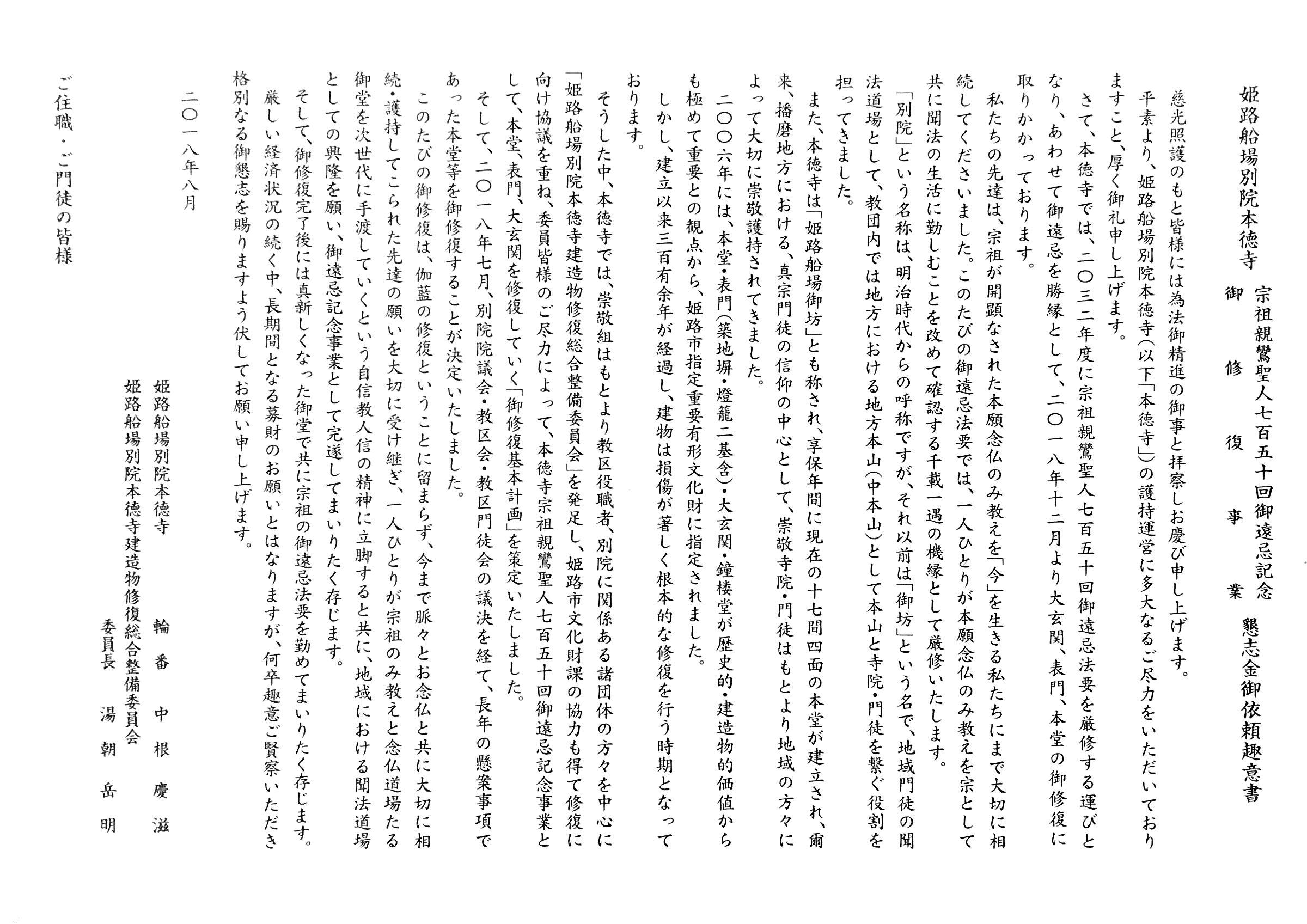 圓光寺からのお知らせ 2023.02.152026.01.05 姫路船場別院本徳寺 御修復事業 姫路船場別院本徳寺 宗祖親鸞聖人七百五十回御遠忌記念 御修復事業 懇志金御依頼趣意書 かなわぬまでも In any crisis苦の受入 This Life of Suffering